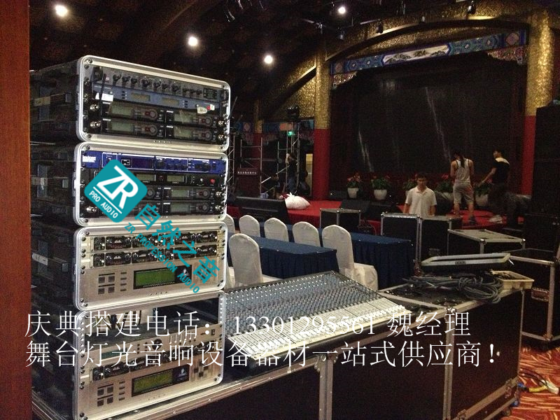 专业音响租赁:美国MACKIE、日本YAMAHA等调音台,美国SHURE话筒、德国森海塞尔话筒,ERIC、LEXONPRO、IBO、LA、DUS等专业全频及线性阵列音箱,DBX、百灵达、DRAWMER、雷克点歌机均衡压限压缩CD等高端周边器材。
